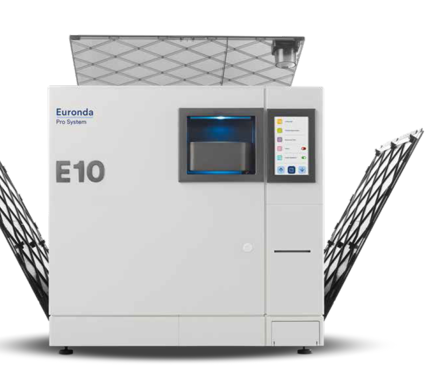 Po rokoch výskumu firma Euronda vyvinula autokláv, ktorý kombinuje všetky najdôležitejšie vlastnosti pre kliniky po celom svete: výkon, efektívnosť, funkčnosť a dizajn. E10 ponúka lepší výkon v kratšom čase. Zaručuje výnimočné sušenie a minimalizuje vodu a spotrebu energie. Je to nielen atraktívne a tiché (<50 dB), ale aj inteligentné zariadenie: vďaka inovatívnej technológii. E10 je jednoduchý, intuitívny autokláv, ktorý sa dokáže postarať o každodenné potreby kliník. Vákuová pumpa je dvakrát výkonnejšia ako v autokláve E9 a cyklus sušenia je rýchlejší, vďaka čomu je E10 najvýkonnejším sterilizátorom spoločnosti Euronda vôbec. Nový parný generátor okamžite produkuje paru pre sterilizačnú komoru, optimalizuje spotrebu vody v súlade so zaťažením, čím sa ďalej skracuje čas sterilizácie a skutočne zlepšuje kvalitu vytvorenej pary.